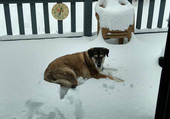 This epitomizes Blue; he was a lover. His stitches weren't even dry, and Shilo wasn't exactly an open and loving dog at the time. But Blue was equal parts charisma and optimism. He liked to play and walk, but he also liked to cuddle and be a very large lap dog. He loved his rides and he loved his 'brown bags' from drive-thru's, and he loved getting treats. After we moved to Flagstaff, he loved the snow; when we moved back, he seemed to be waiting for it to snow here in San Diego.
